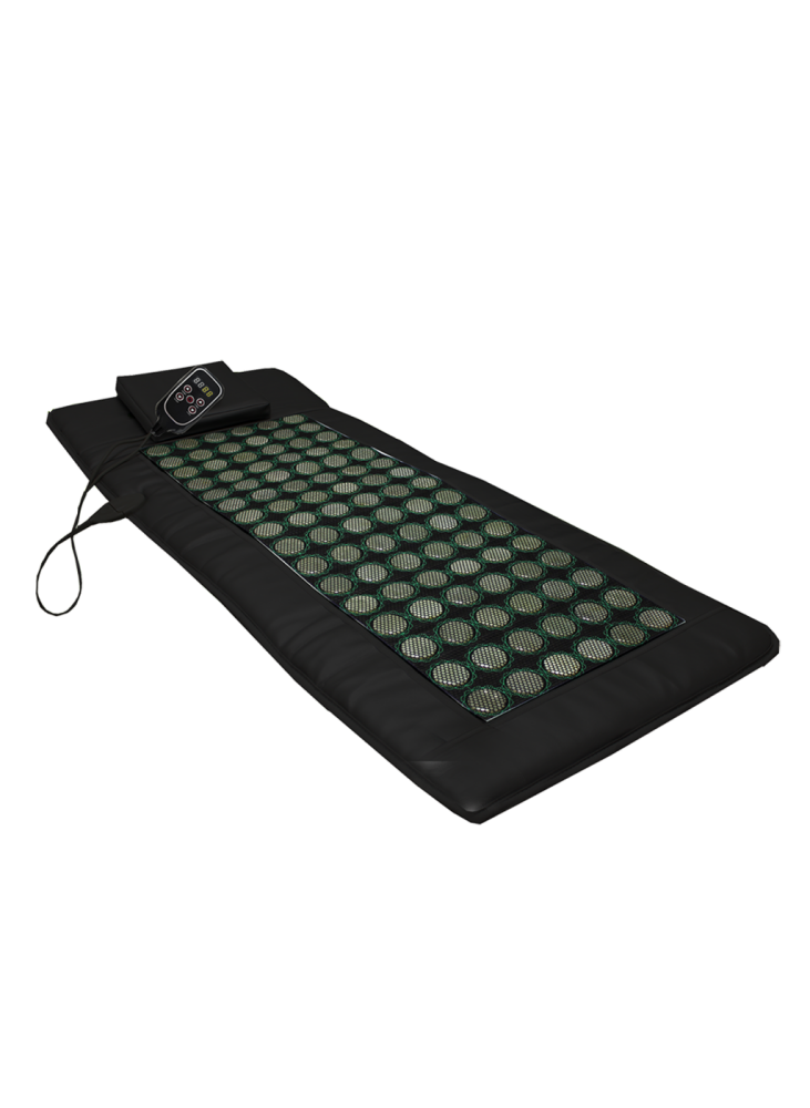 Le Jade Fuzion Mat combine pierres naturelles chauffantes, technologie infrarouge et 12 moteurs de massage vibrants pour offrir une expérience complète mêlant chaleur, détente et revitalisation du corps.
